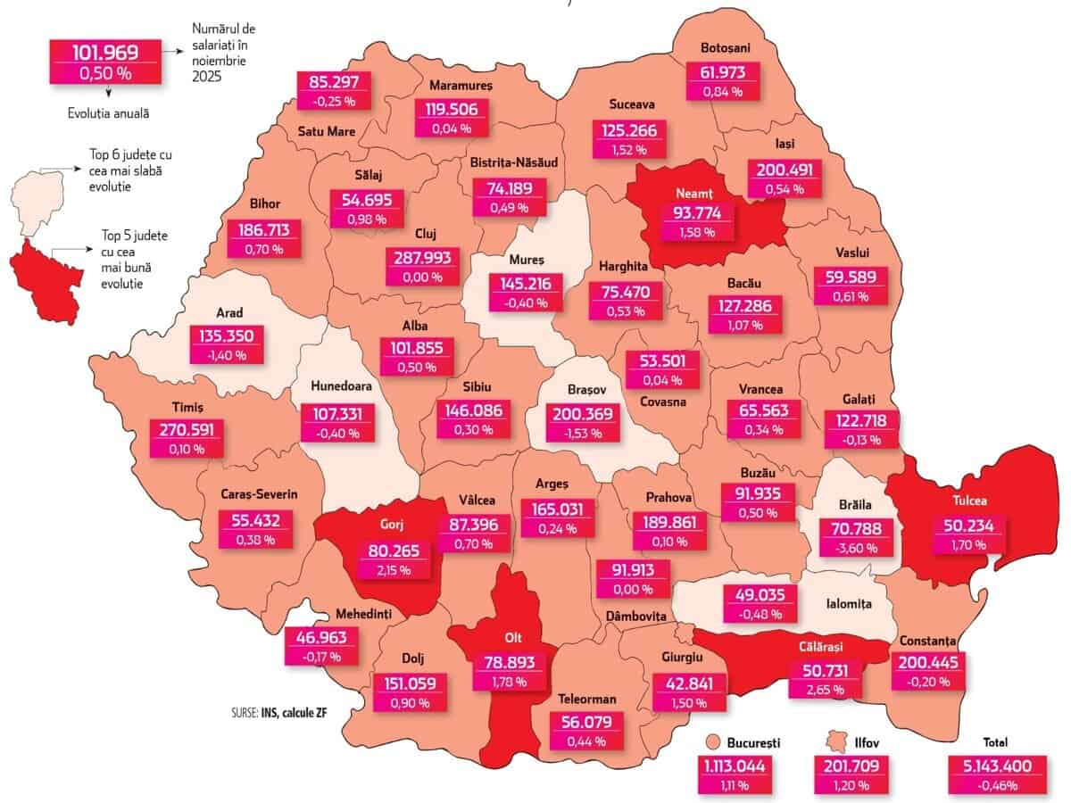 Tabloul general arată tot mai clar că România funcționează prin mai multe piețe locale ale muncii, cu ritmuri diferite de dezvoltare. În timp ce marile motoare economice încetinesc, județe precum Tulcea înregistrează creșteri procentuale mai rapide.