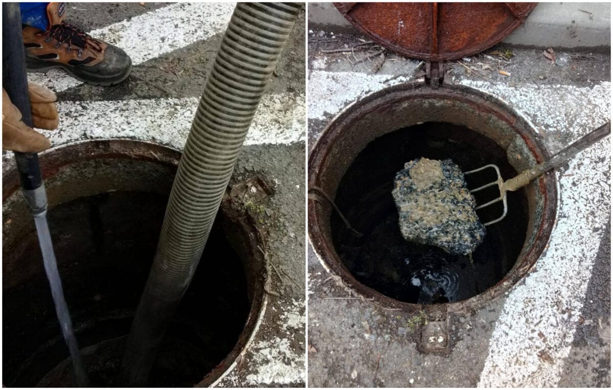 Intervenția, una de rutină la prima vedere, a scos însă la iveală o problemă tot mai gravă: cantități importante de deșeuri și materiale neconforme aruncate direct în sistemul de canalizare.